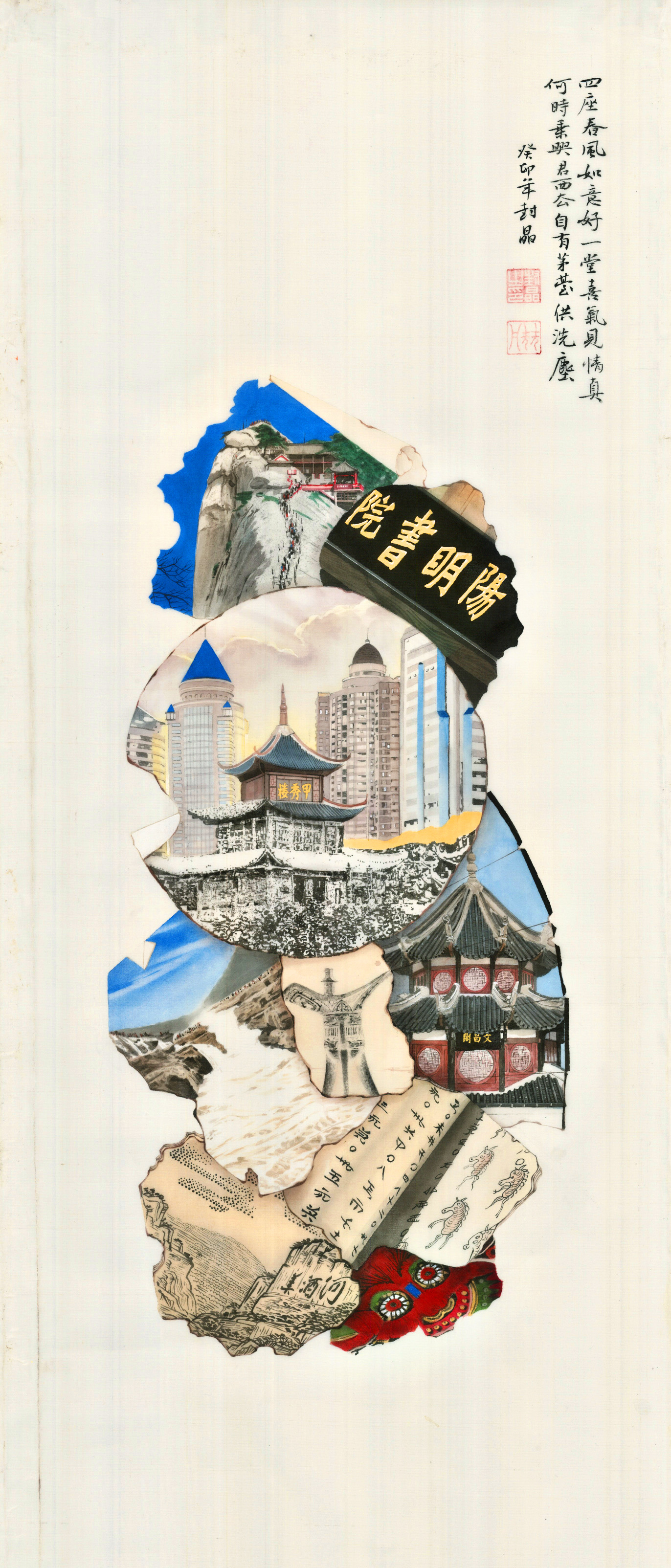 封晶女士巧妙融合了陕西华山的壮丽、阳明书院的传承、甲秀楼的沧桑、文昌阁的源远、父辛爵的古韵、黄河之水的磅礴、水族文字的神秘、美酒河的险峻与苗族绣艺的绚烂。这幅描绘陕黔之美的锦灰堆画卷,体现了陕西——贵州两地深厚的历史底蕴与独一无二文化特色。